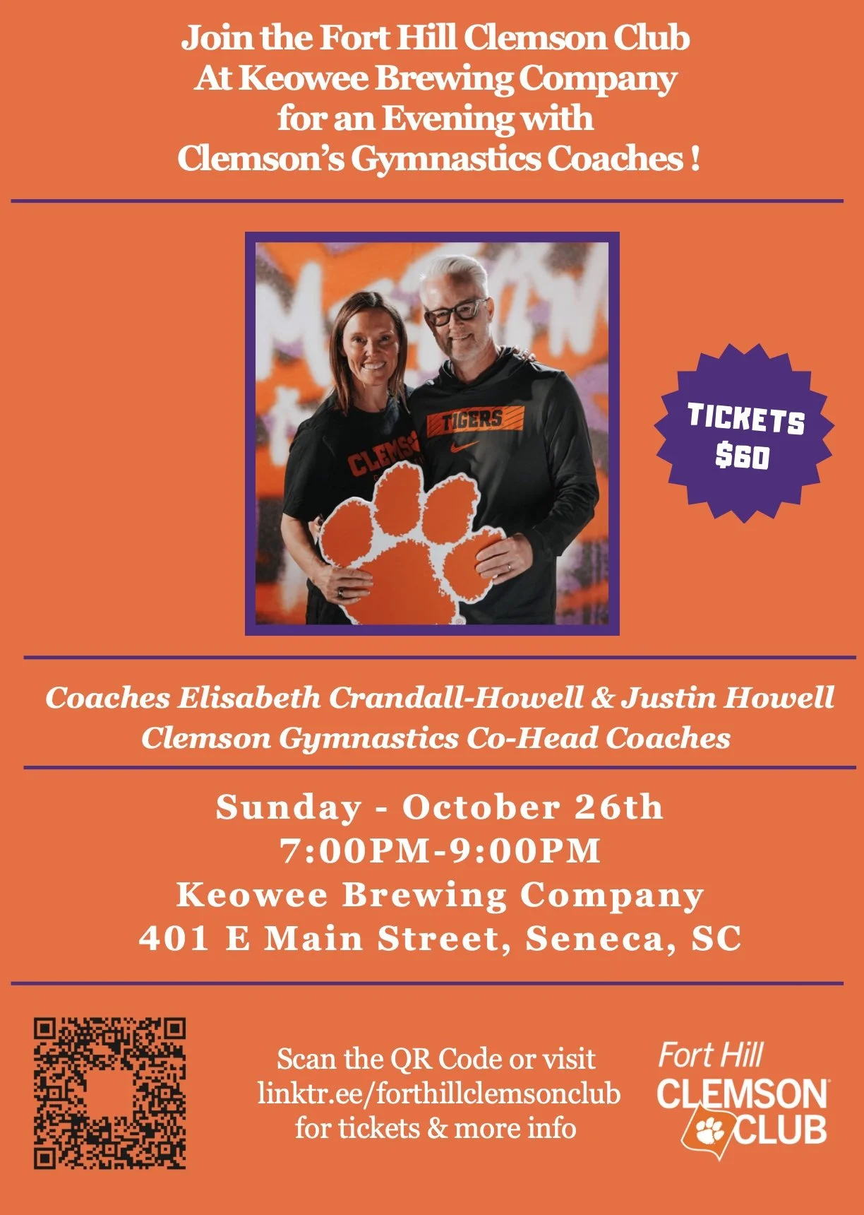 CLOSING EARLY at 6pm - Fort Hill Clemson Club Ticketed Event Sunday, October 26, 2025 2:00 PM 6:00 PM 14:00 18:00 Google Calendar ICS Taproom Hours on Sunday October 26th will be 2pm-6pm, and Kitchen will be 2pm-5:30pm as we prepare for our evening private, ticketed event with the Fort Hill Clemson Club. Interested in the event? Check out the infographic below!