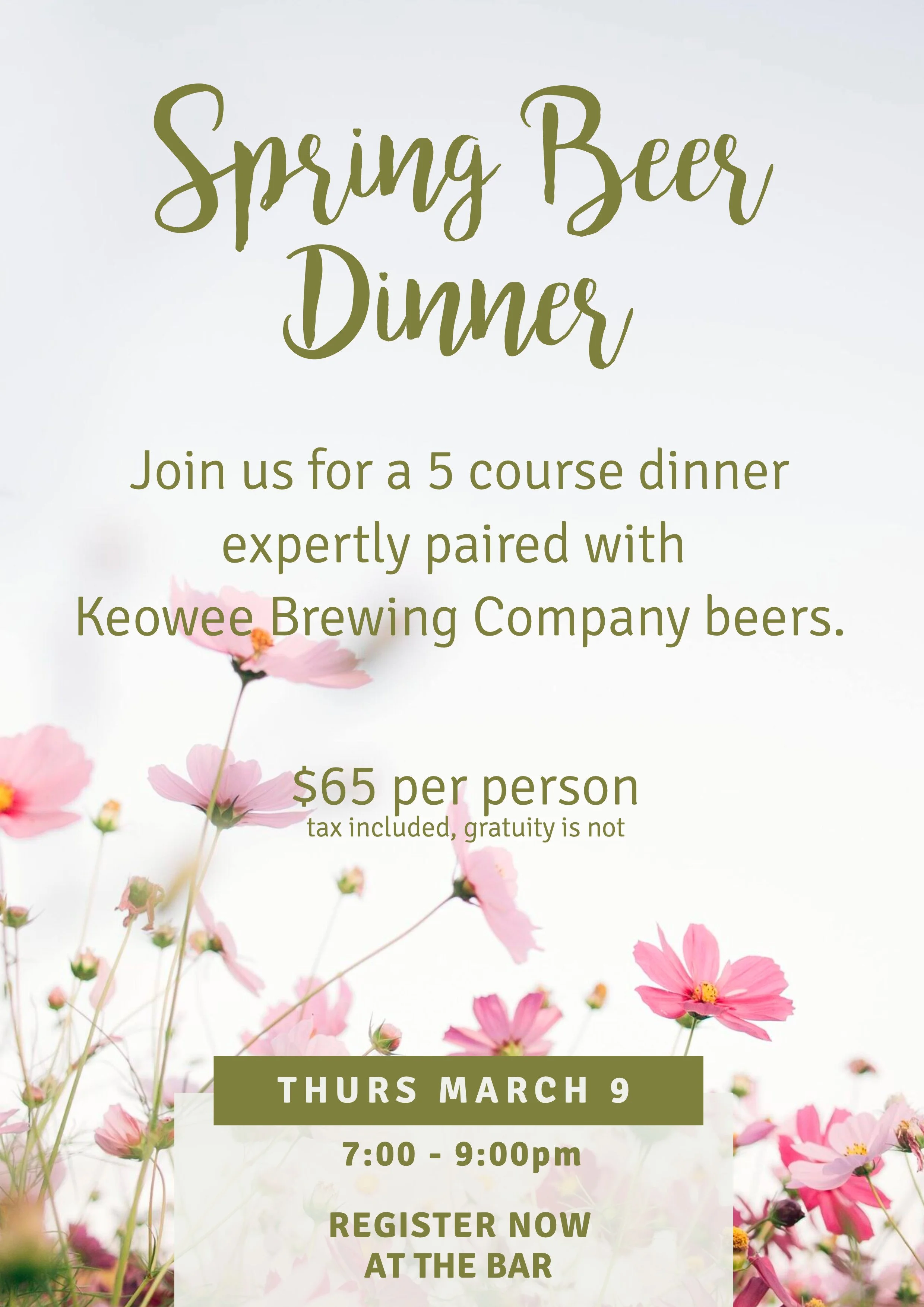 Email letschat@keoweebrewing.com to reserve your seats to the Spring Beer Dinner!